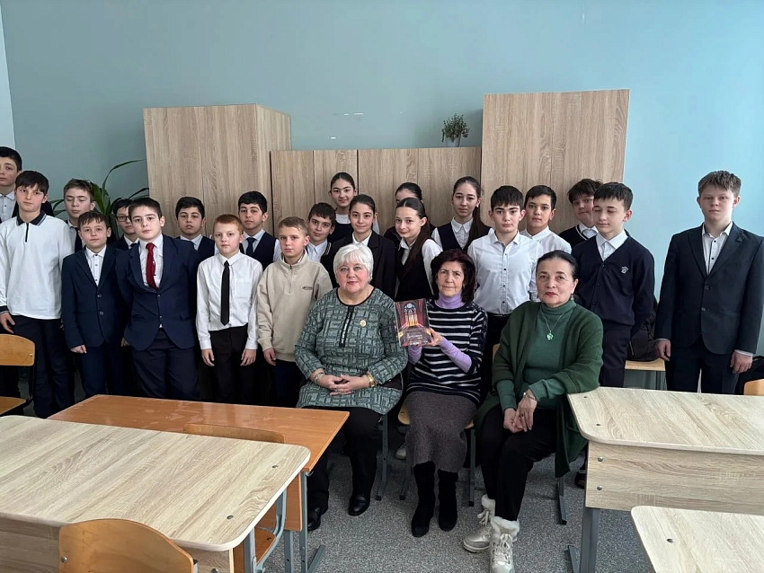 В рамках месячника военно-патриотического воспитания прошла встреча обучающихся 6-х классов с заслуженными работниками культуры республики, сотрудниками Национальной научной библиотеки Северной Осетии А.Т.Цориевой и Н.В.Куличенко.