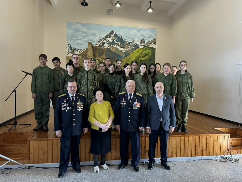 В гости к нам пришли уважаемые люди: Устинов Валерий Иванович, председатель Совета ветеранов ФСБ России по Республике Северная Осетия – Алания, заместитель начальника пограничного управления ФСБ России по РСО-Алания - Летнев Сергей Анатольевич,а также солисты группы «Граница». Гости поделились воспоминаниями о службе, пожелали ребятам расти достойными гражданами своей страны, а артисты исполнили проникновенные патриотические песни, которые нашли отклик в сердцах слушателей.